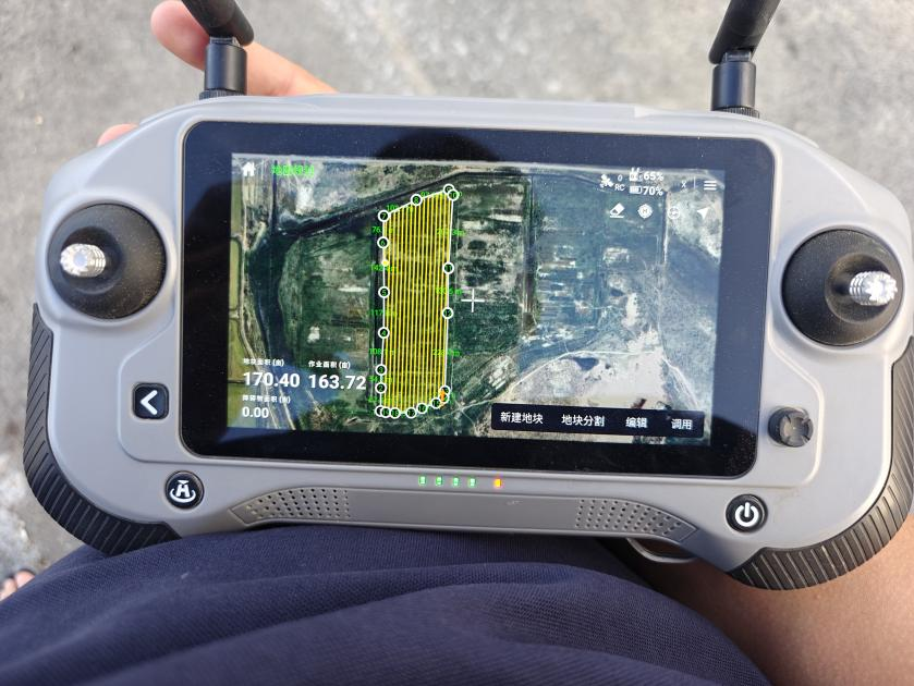 通过遥控器设置飞行高度、航线密度、下料速度等参数